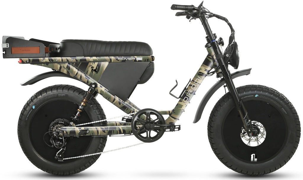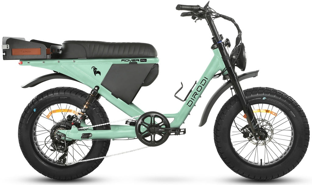 The DiroDi Rover Pro was designed over 2 years with the goal of being Australia’s most advanced dual-suspension fat-tyre eBike. It features KKE front and rear suspension, motorised rear wheel lock, optional patent-pending steering lock, 52V 20Ah Samsung battery, car-grade front light with fog mode, 250W (unlockable to 500W) or 1000W motor, colourful display, 50kg max load rear rack (170kg max load frame), optional second battery, lockable under-seat storage, hidden AirTag slot, premium rear basket (included), and more.