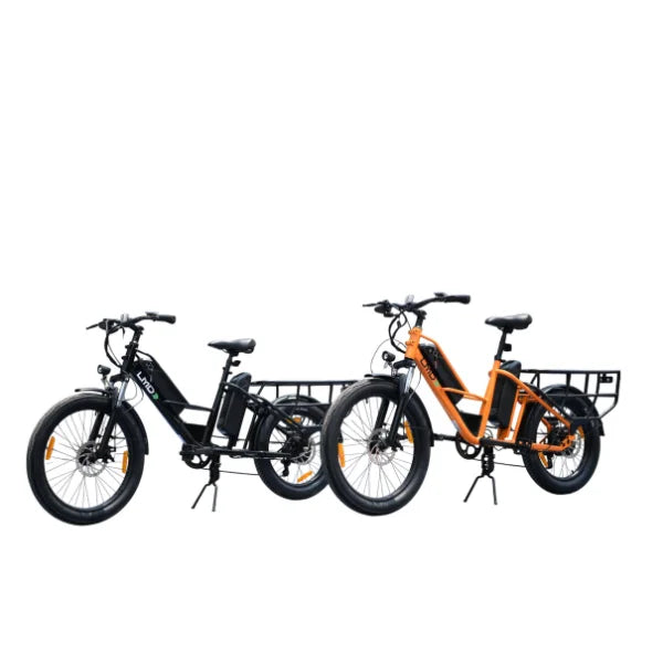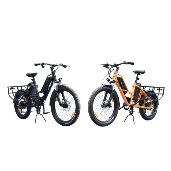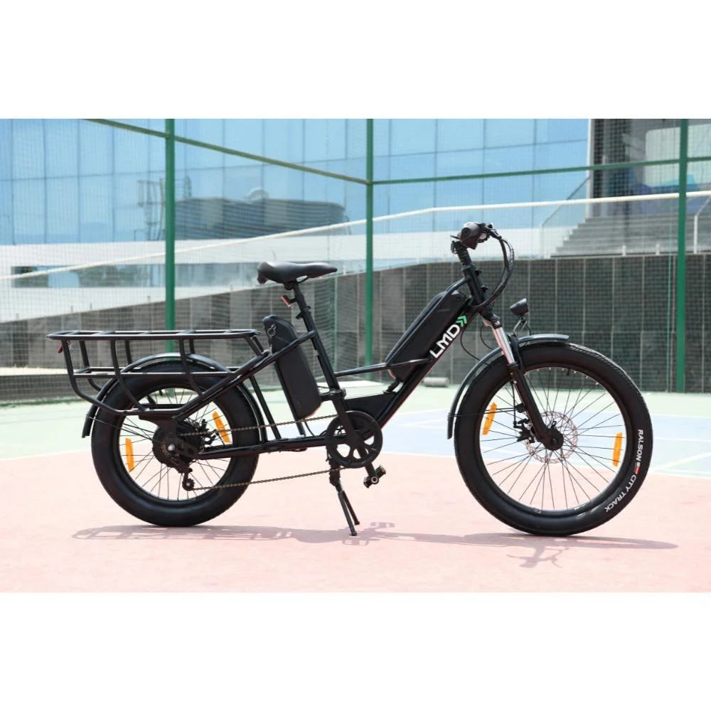 The LMD isn’t just an e-cycle—it’s a powerhouse of durability and performance, designed to handle heavy loads and long rides with ease. Its high-tensile longtail high strength steel frame supports up to 150 kg, while dual 48V 10.2Ah removable batteries provide an impressive range of up to 100 km on the pedal assist. Powered by a 250W rear hub motor and equipped with 24"x3.0" front and 20"x3.0" rear tyres for superior stability, the LMD delivers smooth, safe rides across any terrain. With features like 80mm front suspension, 180mm mechanical disc brakes, and a multifunctional display, it’s built for practicality, reliability, and everyday adventures.