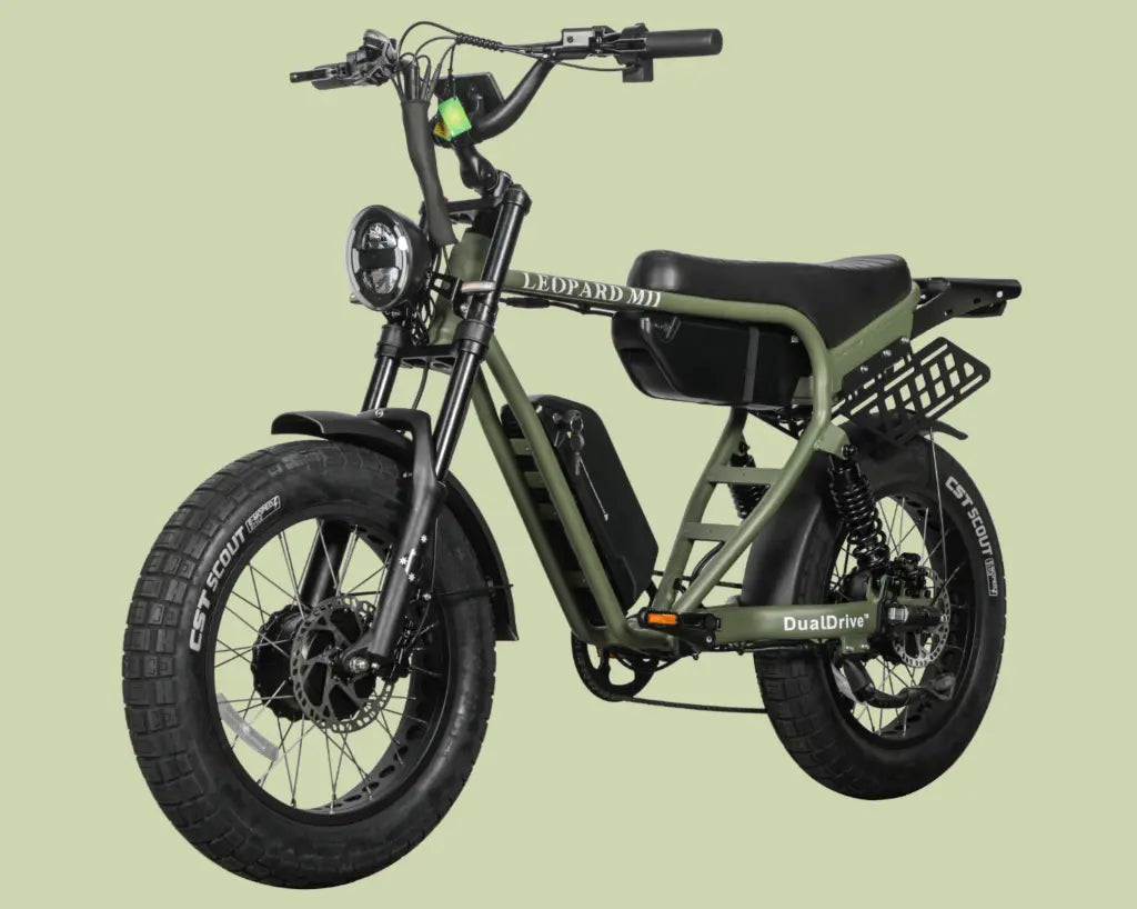 The lifted fat tyre design gives the Voltario Leopard Mark II a bold, off-road-ready stance. It’s paired with robust rims featuring stylish cutouts and stainless steel spokes that resist rust and corrosion—ideal for Australia’s harsh conditions. Fitted with puncture-resistant CST Scout all-terrain tyres, this setup delivers durability, grip, and standout style on any surface.